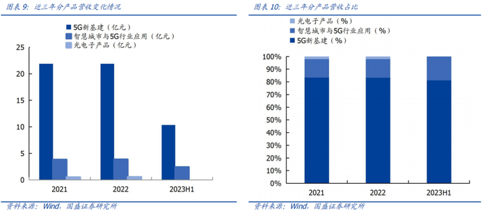 5G新基建是公司营业收入的主要来源, 2023年上半年,5G新基建实现营收10.37亿元,同比增长30.74%,占营收比重达到80.14%。