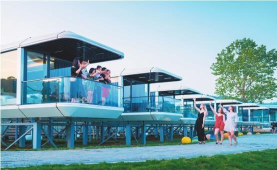 借助得天独厚的山海旅游资源,近年来,庄河市海岛游、露营和漂流等旅游项目发展势头迅猛。王家镇重点打造了以“亲鸟、踏浪、望月”为主题的高端网红民宿项目“九岛海宿”,项目包括4个部分,其中“九岛星球”由9座“星球民宿”组成,对映九大行星,白天看上去平平无奇,到了夜里则闪闪发光,如梦似幻,其奥秘就在于星球民宿的外体是精心设计并手绘而成的;“九岛星际”是一片高端宿营地,每间房都如同一艘舰船,高高架起,入夜后游客如同置身星辰大海,浪漫氛围拉满;“九岛别苑”内设自然简约与西班牙风格相结合的别墅,是家庭旅游和公司团建的理想场所;“九岛市集”布局在海边沙滩上,以集装箱为主体,包括演出舞台、烧烤大排档、烟花秀场等,通过夜间娱乐的方式让游客进一步畅享海岛风光。