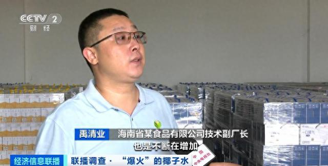江西省新余市某食品饮料企业董事长 阮昭平:今年和去年的数据对比,产量已经增长了600%。现在我们一天生产100多吨椰子水,基本上产品出来后,三天之内就销售一空。