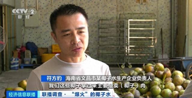 海南省文昌市某椰子水生产企业负责人 符方豹:2020年,我们这些椰子拿过来主要是卖椰子肉,椰子水没人要,我们要花钱请人家拿到外面处理。后来有人要了,从100元1吨,到500元1吨、600元1吨,现在差不多4000元1吨椰子水。