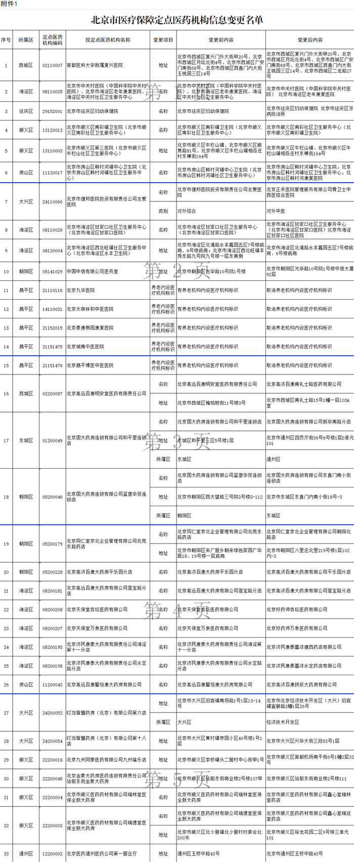 北京市医疗保障局最新公示,北京多家定点医药机构调整信息: