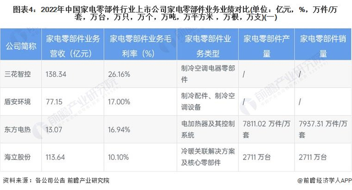 行业主要上市公司:三花智控(002050)、盾安环境(002011)、东方电热(300217)、海立股份(600619)、天银机电(300342)、汉宇集团(300403)、华翔股份(603112)、秀强股份(300160)、长虹华意(000404)、星帅尔(002860)、同星科技(301252)、立霸股份(603519)、东贝集团(601956)等