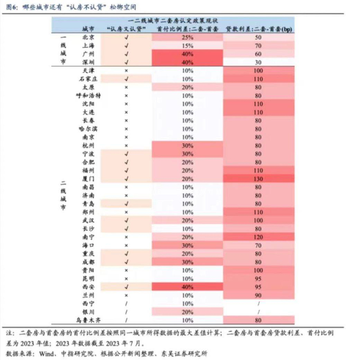 其中二线城市中的西安、南宁、 厦门,一线城市中的广州、深圳受二套房认定放松带来的利率与首付比例下降受益最大。