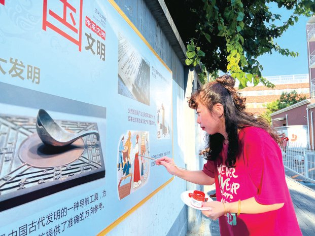 史家实验学校门前有一条近百米的小路,如今在社区和社会资源单位的帮助下,即将变身成为一条“世界文明长廊”。史家实验的老师们手拿画笔,用心选择,从中华文明到世界文明,将古今中外的历史文化装点上墙。让孩子们在进入校园前的这条近百米的“世界文明长廊”里传承中华文明,领略世界文化的多姿多彩。
