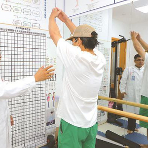 徐子军医生在指导患者运动 石庆 摄