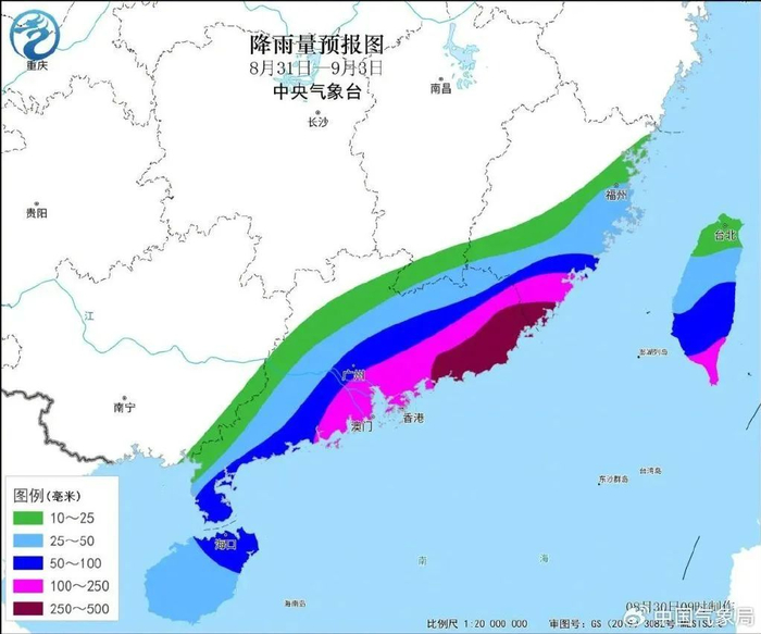 受台风“苏拉”和南下冷空气共同影响,8月31日至9月3日,广东大部、福建中南部、台湾南部有大到暴雨,广东中东部、福建东南部有大暴雨、沿海局地特大暴雨(累计降雨量150~200毫米,沿海局地可达400~500毫米),最大小时降雨量40~80毫米。
