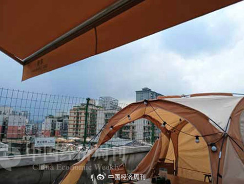 不远处同样的天台,同样的户外露营风餐酒吧。