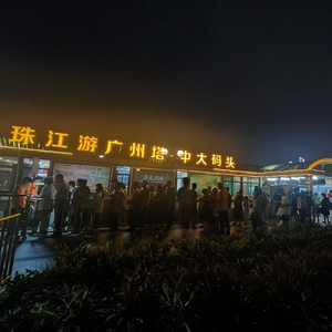 (游客于珠江夜游码头排队等候登船 财联社记者摄)