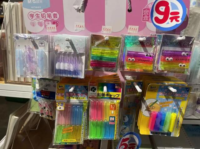 她还买了三角笔套,“这个便宜,就几块钱,套上后笔就不容易滚走。”