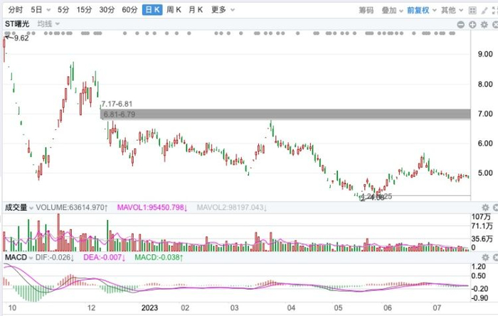 二级市场上,ST曙光曾经在2022年11月连续13个交易日(2022年11月1日起至11月17日收盘)内狂揽了11个涨停板,累计涨幅达64.47%。两个月内停牌核查三次。此后股价持续下跌,至今涨幅全部回吐,累计跌幅超40%。