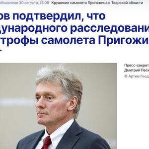 俄总统新闻秘书佩斯科夫:俄罗斯正在对普里戈任在空难中死亡进行内部调查。