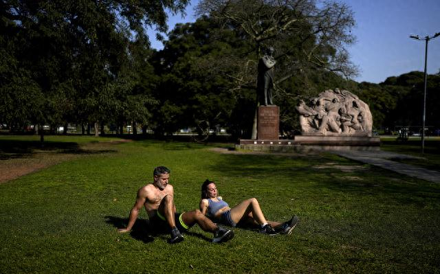 当地时间2023年8月2日,阿根廷布宜诺斯艾利斯,117年来最热的8月记录,人们在公园里晒日光浴。