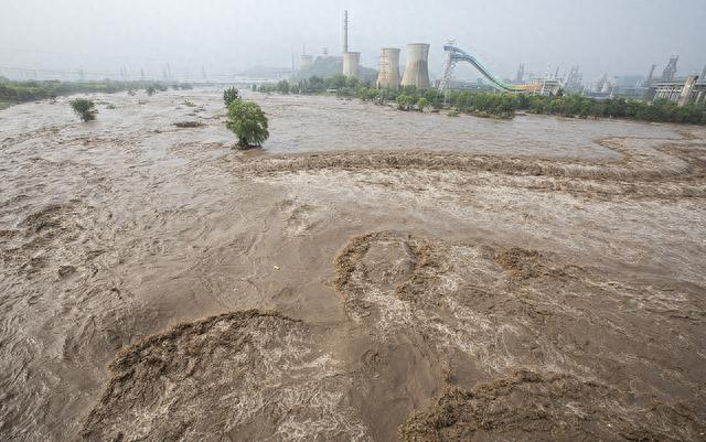 2023年8月1日,北京遭遇暴雨,永定河波涛汹涌。