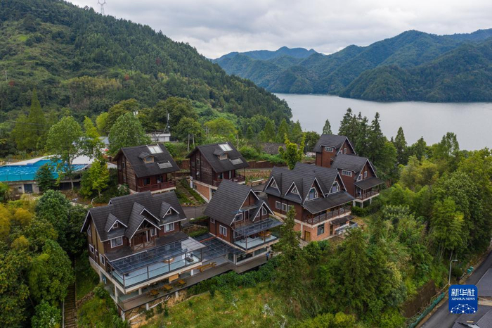 8月30日拍摄的紧水滩镇龙门村的一家民宿(无人机照片)。该村通过打造村落景区,引入高端民宿等提升乡村旅游的发展水平。近年来,浙江省丽水市云和县积极贯彻“绿水青山就是金山银山”理念,持续推进美丽乡村建设工作,发展“最美梯田”、“十里云河”、“梨花乡里”等美丽乡村风景线,将地域特色与文化底蕴、农业资源与旅游要素相结合,大力发展乡村旅游产业。今年上半年,云和县全县农家乐休闲旅游接待游客48.6万人次,同比增长51.88%,营业总收入3216.8万元,同比增长51.38%。新华社记者 徐昱 摄
