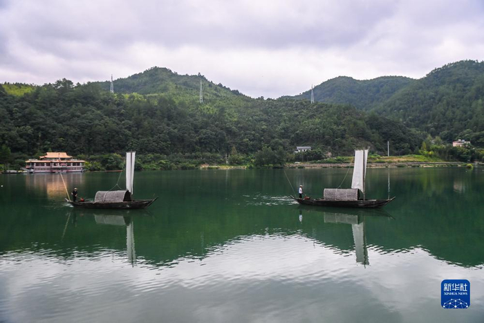8月30日,传统的舴艋帆船在紧水滩镇石浦村前的江面上缓缓驶过。石浦村位于云和县县城北部,该村地理位置优越,自然风光秀丽,是省级重点历史文化古村落保护村。近年来,浙江省丽水市云和县积极贯彻“绿水青山就是金山银山”理念,持续推进美丽乡村建设工作,发展“最美梯田”、“十里云河”、“梨花乡里”等美丽乡村风景线,将地域特色与文化底蕴、农业资源与旅游要素相结合,大力发展乡村旅游产业。今年上半年,云和县全县农家乐休闲旅游接待游客48.6万人次,同比增长51.88%,营业总收入3216.8万元,同比增长51.38%。新华社记者 徐昱 摄