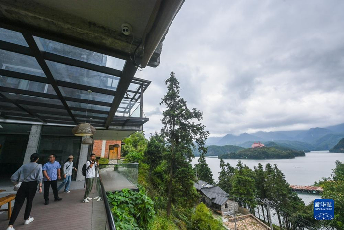 8月30日,游客在紧水滩镇龙门村的听舟木屋民宿观看风景。该村通过打造村落景区,引入高端民宿等提升乡村旅游的发展水平。近年来,浙江省丽水市云和县积极贯彻“绿水青山就是金山银山”理念,持续推进美丽乡村建设工作,发展“最美梯田”、“十里云河”、“梨花乡里”等美丽乡村风景线,将地域特色与文化底蕴、农业资源与旅游要素相结合,大力发展乡村旅游产业。今年上半年,云和县全县农家乐休闲旅游接待游客48.6万人次,同比增长51.88%,营业总收入3216.8万元,同比增长51.38%。新华社记者 徐昱 摄
