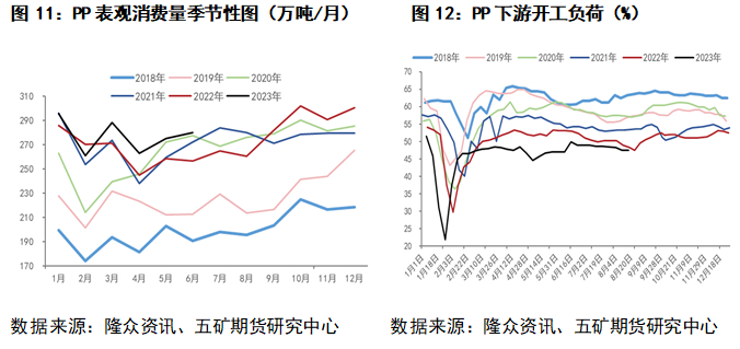 每年9-10月期间,下游积极备战“双十一”,“双十二”等电商活动,PP表需及下游开工率均有明显上涨。2023年春节后PP下游开工率始终保持47%左右,但库存的降低充满疑问,据调查发现截止2023年8月,PP下游BOPP已投产9条生产线(约38.5万吨产能),PP拉丝投产2条生产线(约5.5万吨产能),所以在开工率保持不变但下游产能上升的作用下,下游需求“悄悄”转好。