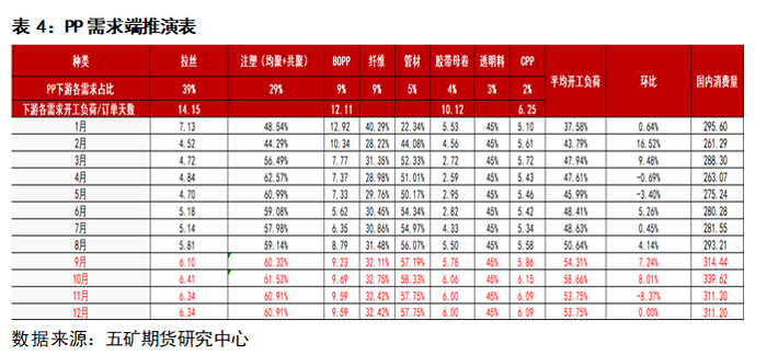 按下游终端产品占比以及季节性规律,根据表4可见,9-10月需求向好,11-12月稍有回落。