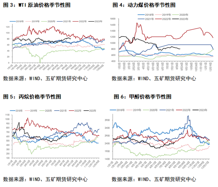 从下图3-图6可知,2018年9月-11月期间,WTI原油、动力煤、丙烷以及甲醇所有原料均上涨,对成本端起到了强力支撑,推动现货价格上行,由近到远的传递到远期合约。