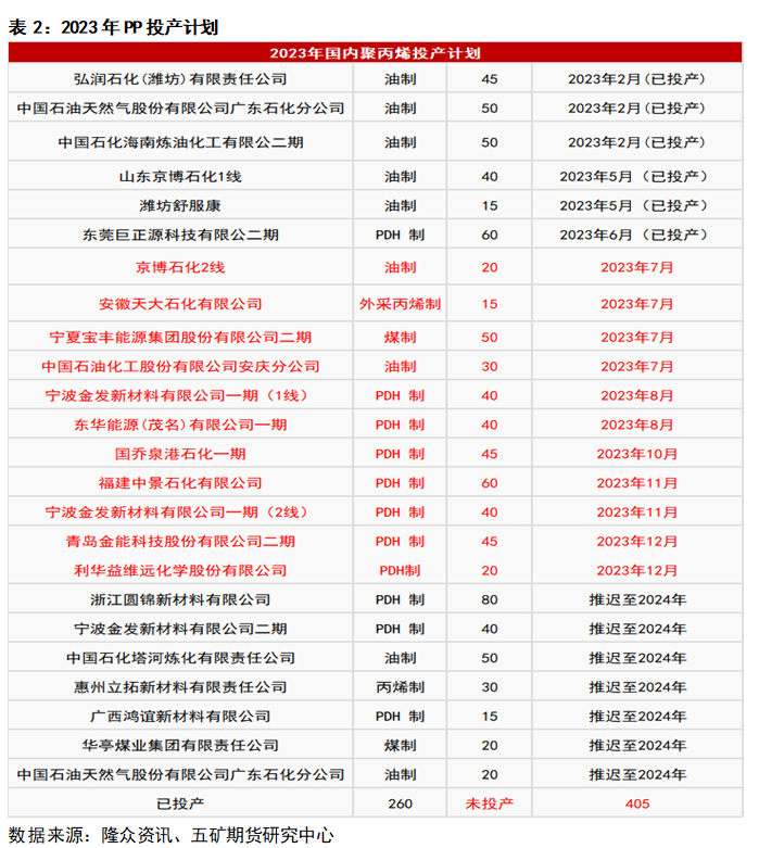 2.2023年PP未投产设施推迟至2024年1月,造成供应端承压。
