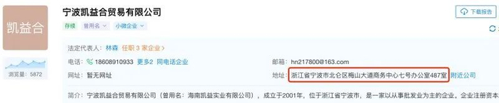 蓝鲸财经梳理公开信息发现,宁波凯益合贸易有限公司(下称“凯益合”,曾用名“海南理益实业有限公司、海南凯益实业有限公司”)、宁波博永伦科技有限公司(下称“博永伦”,曾用名“上海博永伦科技有限公司、海南博伦科技有限公司”),两家公司均为个人股东实控,未披露参保人员信息;且两家公司曾在2019年末和2020年初相继更换地址,恰巧更换后在同一座办公楼;此外,凯益合曾用名还带有“理益”二字,而检索同电话企业,与其关联的多家海南企业中,恰有一家名为国华(海南)有限公司的企业。