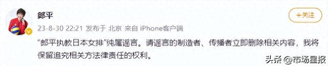 8月30日晚,郎平通过个人微博辟谣: