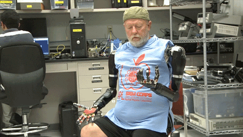2014年,Les Baugh在约翰·霍普金斯大学实验室里,成为世界上第一个用大脑控制双手义肢的人