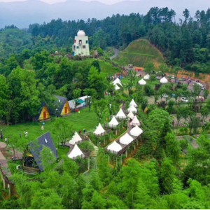 星河天文台安静矗立在新河村的高处,圆柱形的外观像海上灯塔。早先刚竣工时,天文台四周光秃秃一片。两年过去,有城建公司围绕它建起了露营基地。