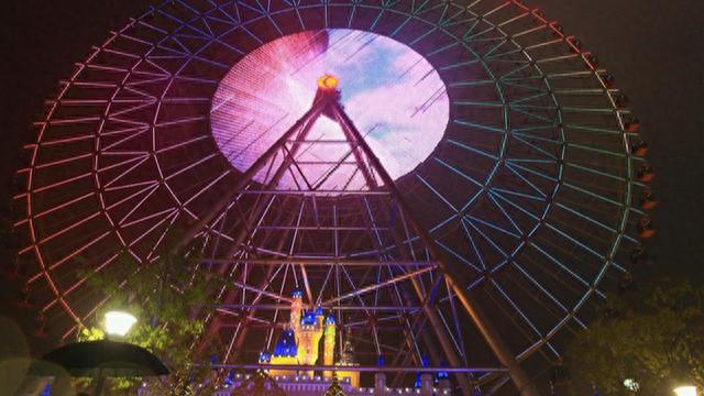 国内首个悬臂式屋顶摩天轮SKYRING(天空指环)在上海大悦城亮灯。