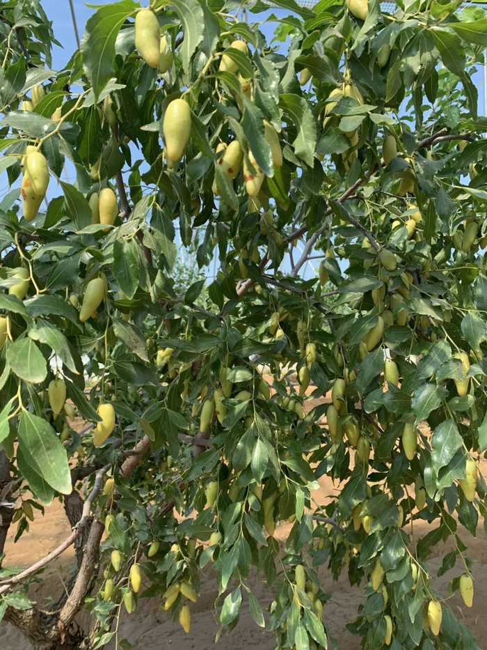 “这一片是古枣林,有着‘枣果更甜、枣叶更茂、枣树更粗壮’的显著特征,主打一个好吃!那一片养在大棚里的各种观赏枣,才叫一个好看嘞!”在枣园施工的工人大姐,热心地为记者指点。
