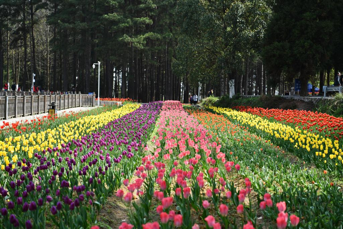 游客在龙架山国家森林公园赏花观光(2021年3月23日摄)。