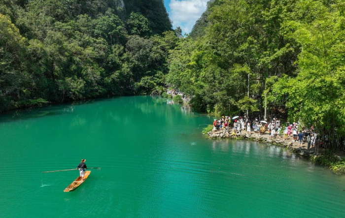 游客在荔波小七孔风景区游玩(2023年8月15日摄)。