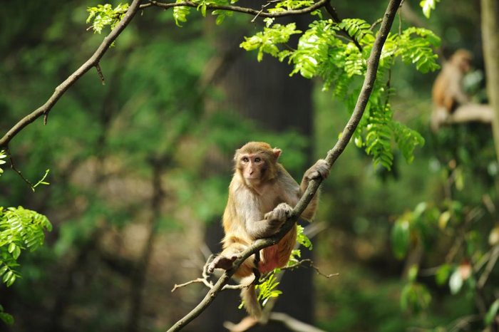 2018年4月3日在黔灵山公园拍摄的猕猴。