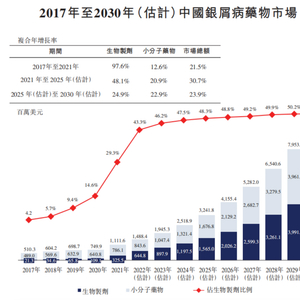 银屑病也称牛皮癣,是一种慢性、免疫介导的、复发性皮肤病,全球银屑病患者约1.25亿人,患病率可达 2%-3%。根据银屑病基层诊疗指南(2022年)流行病学估算,中国银屑病患者人数在700万例以上。其中,斑块状银屑病约占所有银屑病病例的80%~90%,是银屑病中最常见的类型。据弗若斯特沙利文报告,2021年,中国的银屑病药物市场规模为11亿美元,预计于2030年将增长至95亿美元,复合年增长率为27.1%。
