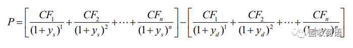 其中,P为估值日的保险估值;FV为标的债券到期时还本付息金额;TY:为标的债券计息年度天数;d为估值日到标的债券到期日实际天数;ys为保险后标的债券估价收益率;yd为标的债券估价收益率。