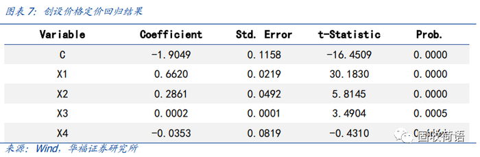 从系数的绝对值大小来看,标的债券票面利率X1的系数最高,当底层票面每提升1%,创设价格会提升0.66元。