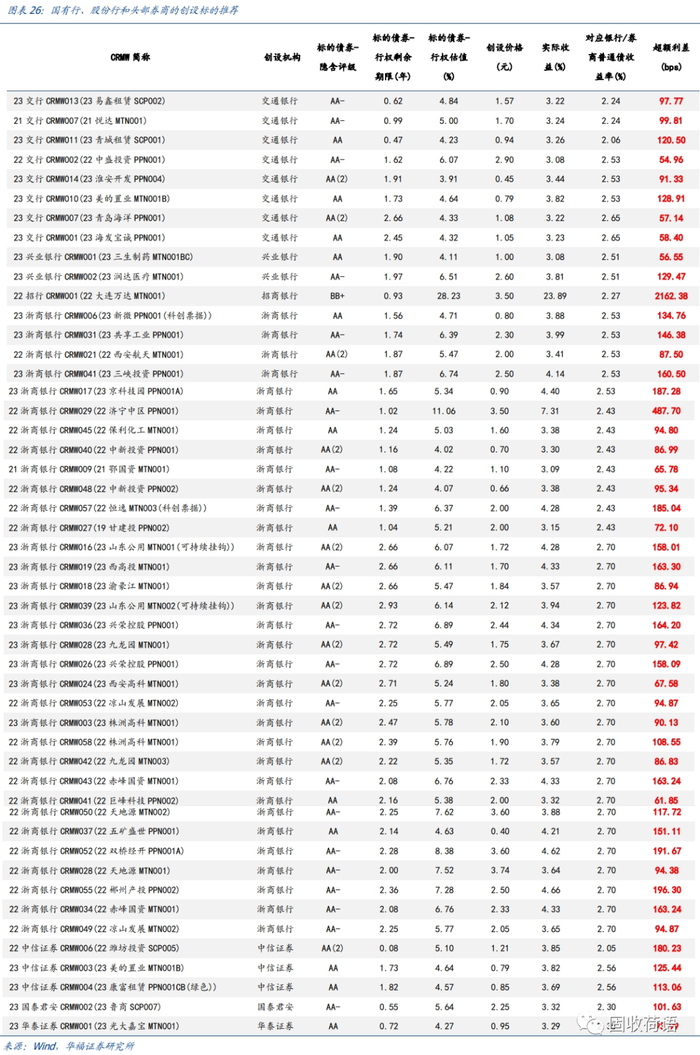 我们认为,对于以大型国有行、股份行或头部券商为创设机构,且目前有较高超额利差的“标的债券+CRMW”组合机会,具有投资价值,可在二级市场关注相关投资机会。