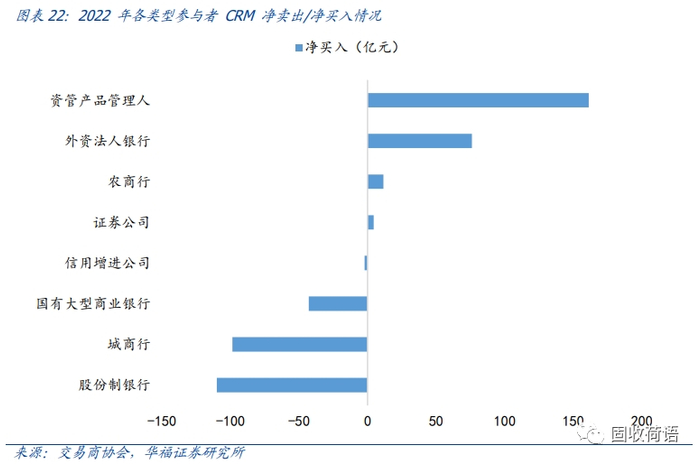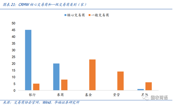 整体看,相比于传统债券市场,CRMW的市场参与者数量较少,且类型相对较为单一,银行和资管产品管理人是主要交易机构,交易活跃度较低,较为缺乏流动性。