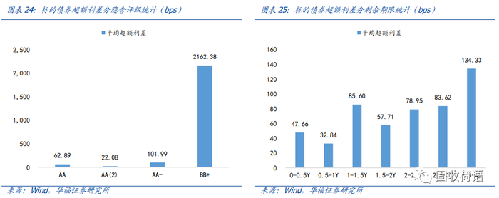 我们通过利用当前符合条件的218只 CRMW产品底层标的债券的2023年8月2日的行权中债估值,扣减创设费后,与对应创设机构&对应行权剩余期限的银行/券商普通债的平均行权估值进行对比,计算超额利差。