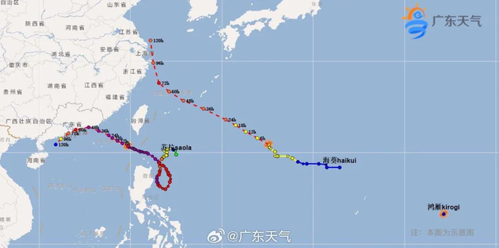 预计,“苏拉”将于9月1日下午至夜间在广东惠来到香港一带沿海登陆,或在广东近海向西偏南移动。