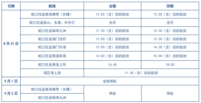 9月1日水路航班全线停航
