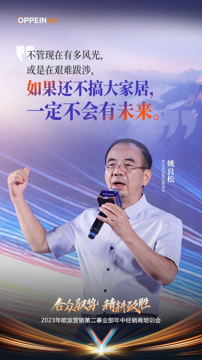 “如今的欧派早已不是当年的欧派”。在今年7月举行的欧派营销第二事业部年中经销商培训会上,欧派家居集团董事长姚良松深度解析行业形势,并对未来的发展方向做了战略部署。他表示:“不管是风生水起,还是艰难跋涉,如果不做大家居,就不会有未来。”