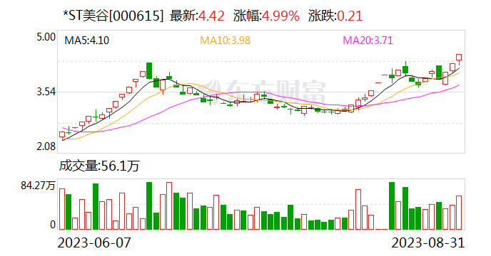 8月29日至31日间的三个连续交易日,*ST美谷再度收获三涨停,此前在8月中旬,该公司股价也曾出现连续涨停走势。