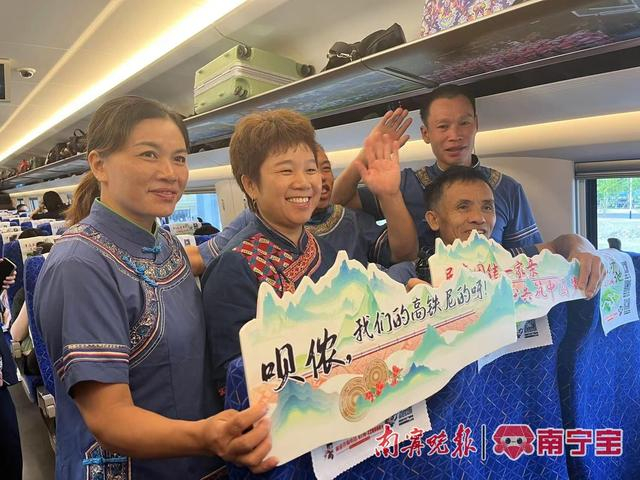南宁北站,人声鼎沸,一场舞龙舞狮表演正在上演。热情洋溢的舞龙舞狮、嘹亮的山歌、独具民族风情的舞蹈……表演者们用精彩的演出,展示了武鸣迎接高铁时代的热情与喜悦。在都安站,当地百姓身着瑶族民族服饰,打响锣鼓、唱响欢歌、摆出美食,迎接贵南高铁开通运营。