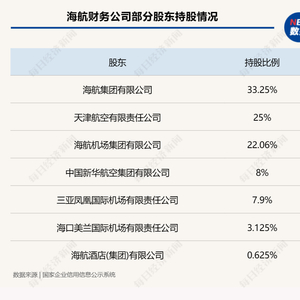 海航财务公司目前前三大股东为海航集团有限公司、天津航空有限责任公司、海航机场集团有限公司,分别持股33.25%、25%、22.06%。海航控股近期发布的半年报显示,2023年上半年,公司实现营业收入276.36亿元,较上年同期增加149.51%;归属于上市公司股东的净利润亏损16.09亿元,亏损减少87.46%。