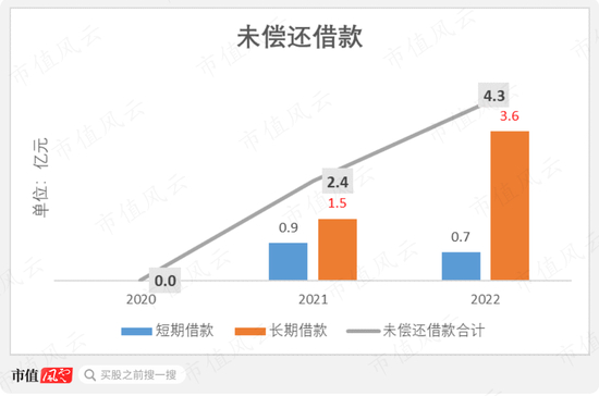 为应对资金的短缺,2021-2022年,公司开始大幅举债。截至2022年末,公司账面上的未偿还借款为4.3亿元。
