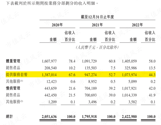 2020-2022年,体重管理业务的营收大部分,来自向深度客户提供服务套餐。