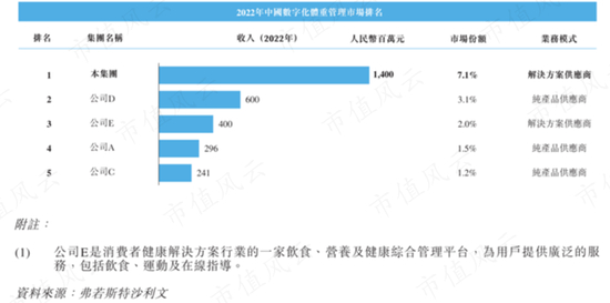 数字化体重管理市场同样分散。2022年,前五大参与者的合计市场份额为14.9%,公司以7.1%的份额排名第一。