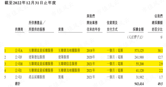 2020-2022年,“公司A”是最大供应商。风云君推测,“公司A”即抖音平台。