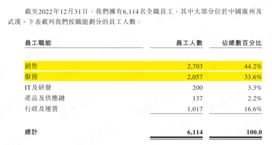 据披露,截至2022年末,公司拥有一支庞大的销售和服务团队,全职员工接近4800人,占到同期员工总数的78%。